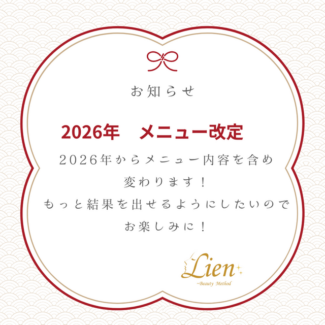 来年2026年1月よりフェイシャルメニューボディケアのメニュー改定を行います