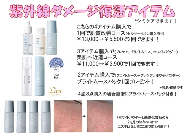 紫外線ダメージ復活アイテムご購入で