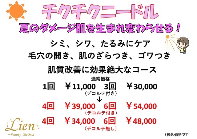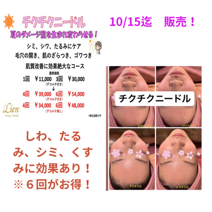 通常は3回チケットのみになっていますが、ちくちくは回数を重ねて1週間に1回施術が可能。ですのでお肌状態を変えたい!(状態にもよりますので相談してください)