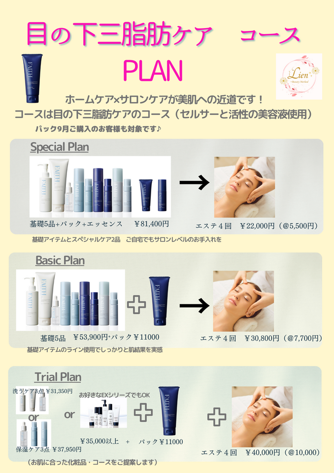 続きましては、、、目の下3脂肪ケアの施術はパックをご購入のお客様にのみ販売になります