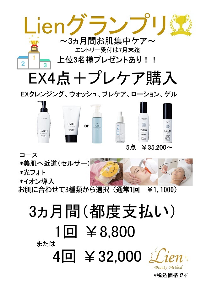 LienグランプリはもちろんLienのお客様はだれか3名は入賞しますので頑張ってきれいになりましょう!