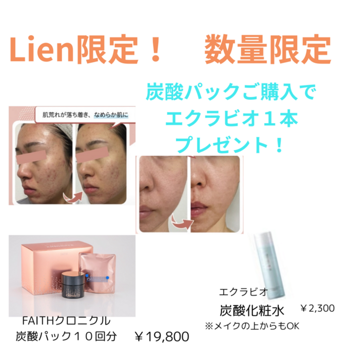 キャンペーン内容は、、、Lien限定 FAITH炭酸パック購入でエクラビオ1本プレゼント☆