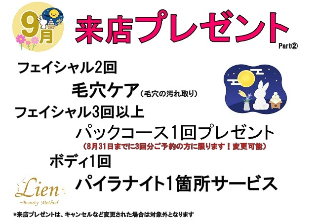 但し!フェイシャル3回のパックコースに関しては8月31日までに3回分(9月)ご予約ください!仮でも構いません!